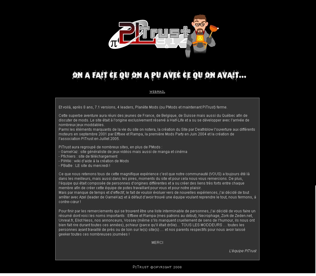 Du coup, les « ptits gars » ont dû prendre la relève et ont continué à faire vivre le site. Je n’ai pas trop suivi l’activité du site après mon départ, cela me faisant trop de mal de voir que je n’y participait plus. Je n’ai pas quitté PMods par plaisir, surtout pas. C’était un arrachement.